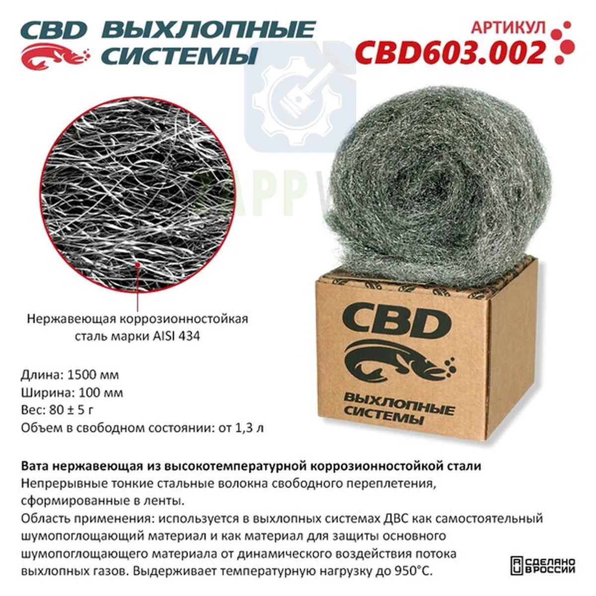 Вата нержавеющая высокотемпературная для глушителя CBD