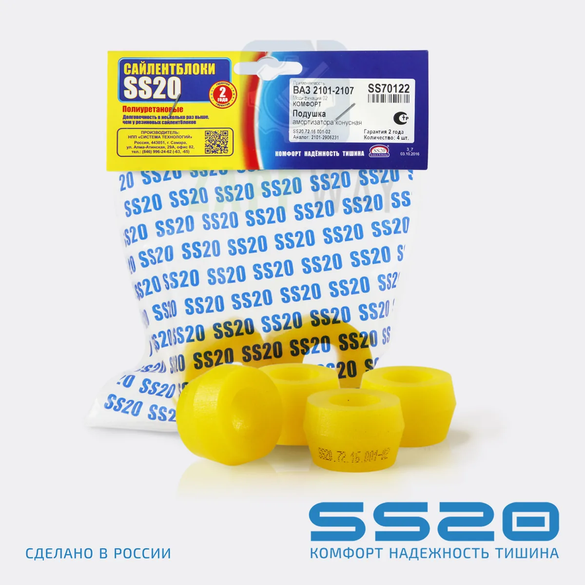 Втулка амортизатора заднего (компл.: 4шт.) 2101 (желтый полиуретан) SS20