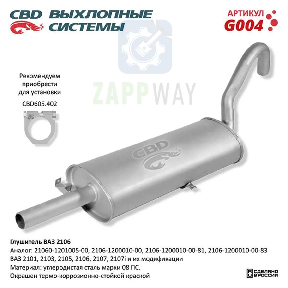 Глушитель ВАЗ 2101–2107, окрашенная сталь с антикоррозионным покрытием, стандартный
