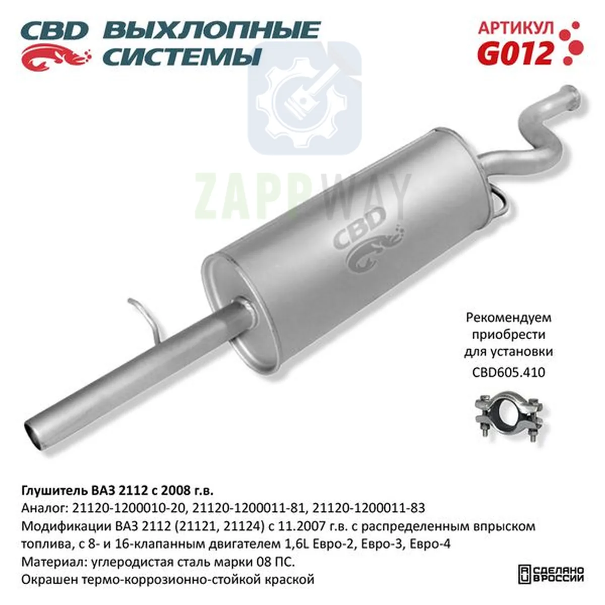 Глушитель ВАЗ 2112 1.6L нерж CBD