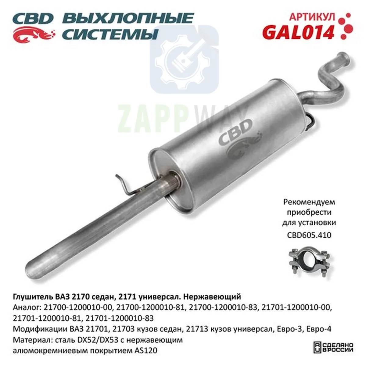 Глушитель ВАЗ 2170/2171 седан/унив. нерж CBD