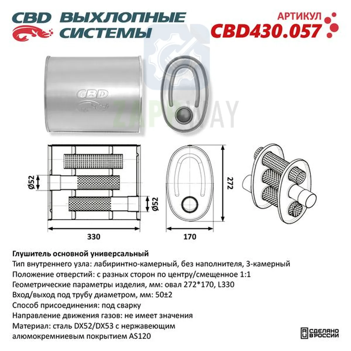 Глушитель универсальный овальный нержавеющий CBD