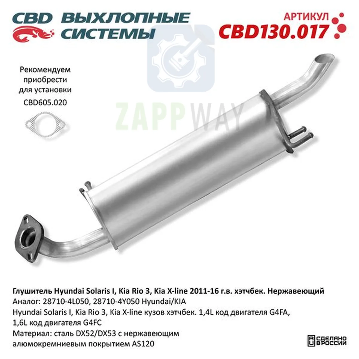 Глушитель Хендай Солярис Киа Рио 3 нерж CBD