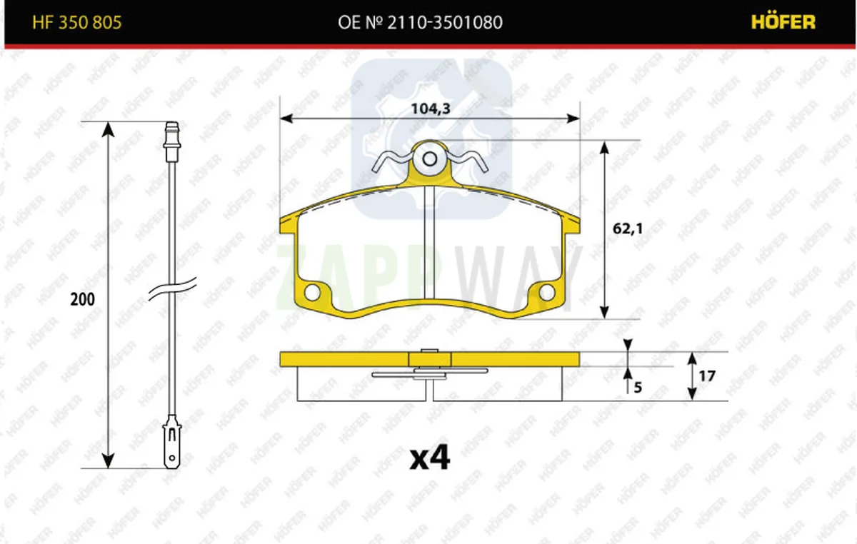 Передние тормозные колодки 2110, 2111, 2112, Kalina, Granta, Priora - Hofer